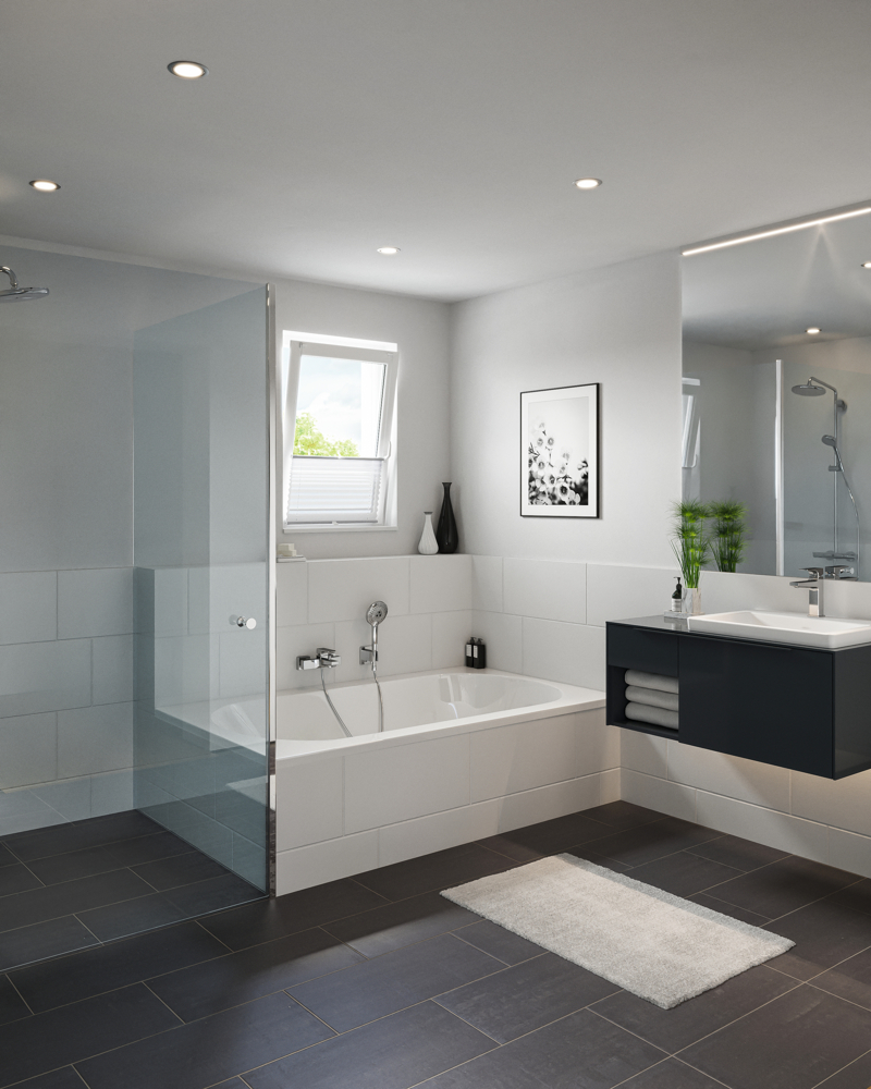 • Hochwertige Fliesen in Bad und Küche