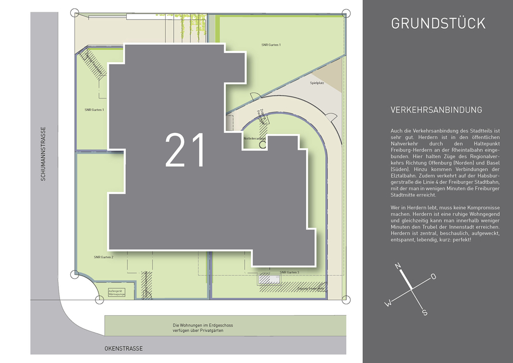Die Okenstraße verbindet modernes, komfortables Wohnen mit der Lebensqualität, die Freiburg so lebenswert macht. Hier treffen Sie auf eine engagierte Nachbarschaft und die perfekte Balance zwischen urbaner Dynamik und einer ruhigen Umgebung. Lassen Sie sich von der Atmosphäre dieses Stadtteils verzaubern und finden Sie Ihr neues Zuhause in einem der lebenswertesten Viertel Freiburgs.