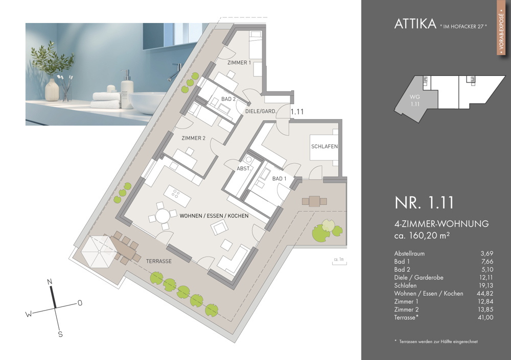 Im Hofacker 27 steht für ein Zuhause, das mehr ist als nur vier Wände: Es ist ein Ort, an dem Geborgenheit, Stil und nachhaltiger Komfort spürbar werden. Die moderne Architektur mit klaren Linien und zeitloser Farbgebung vermittelt Wertigkeit und Beständigkeit – ein Zuhause, auf das man stolz sein kann. Große Fensterflächen und die ideale Südausrichtung lassen die Räume im Tageslicht erstrahlen. Damit entsteht ein Wohngefühl voller Leichtigkeit und Energie. Elektrische Rollläden schenken Komfort und Sicherheit, während die Fußbodenheizung für gleichmäßige Wärme und Behaglichkeit sorgt. Auch in der Ausstattung spiegelt sich Anspruch und Qualität: Hochwertige Bäder schaffen eine Atmosphäre von Wellness im Alltag. Aufzug und Tiefgarage garantieren Bequemlichkeit – Werte, die den Alltag erleichtern und langfristig zählen. Die Zukunft fest im Blick: Als Effizienzhaus 55 mit Solaranlage überzeugt das Projekt mit niedrigen Energiekosten, Unabhängigkeit von steigenden Preisen und einem klaren Bekenntnis zur Nachhaltigkeit. Das insektenfreundliche Licht- und Pflanzkonzept verbindet Ökologie mit Ästhetik – ein Zeichen von Verantwortung und Weitsicht. So entsteht ein Wohnumfeld, das zugleich schützt, inspiriert und langfristig Bestand hat – ein Zuhause, in dem man ankommen und bleiben möchte. Highlights auf einen Blick • Moderne Architektur mit klarer Linienführung und zeitloser Farbgestaltung • Großzügige Fensterflächen & ideale Südausrichtung für lichtdurchflutete Räume • Elektrische Rollläden und Videosprechanlage für Komfort & Sicherheit • Fußbodenheizung in allen Wohnräumen • Hochwertige Badausstattung mit Wohlfühlcharakter • Aufzug & Tiefgarage mit direktem Zugang • Automatische Türverriegelung der Hauseingangstüre • Effizienzhaus 55 – energieeffizient & zukunftssicher • Solaranlage zur Nutzung erneuerbarer Energien • Insektenfreundliche Beleuchtung & nachhaltiges Pflanzkonzept